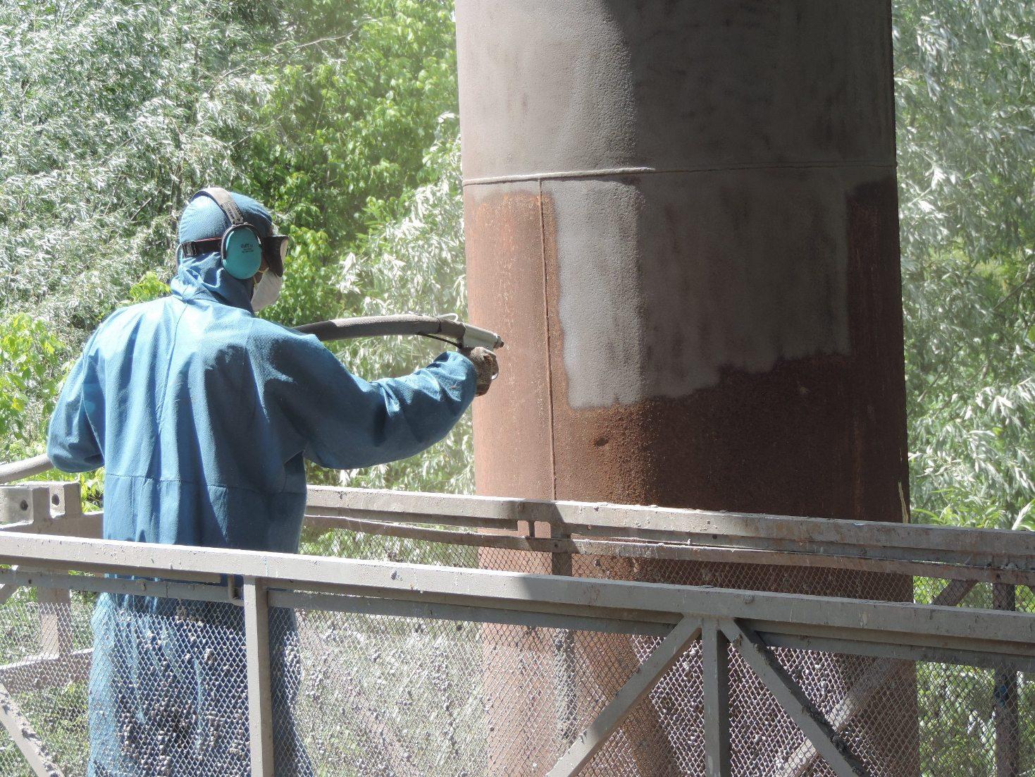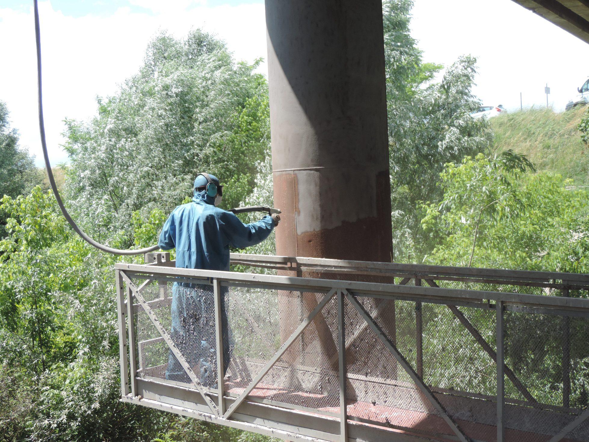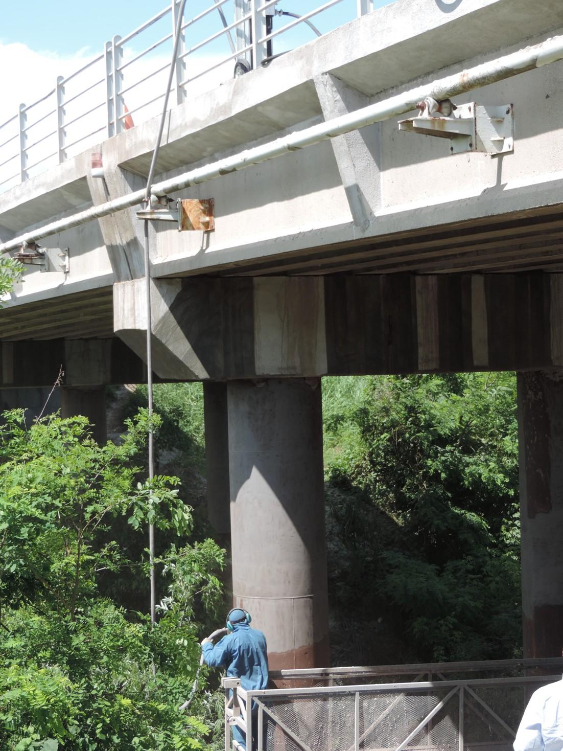 La manutenzione del ponte prevedeva una serie di operazioni e il trattamento di differenti superfici. In alcune aree la struttura in calcestruzzo appariva deteriorata lasciando scoperti i ferri di armatura che si erano completamente arrugginiti. Occorreva pertanto asportare i residui di calcestruzzo dalle parti danneggiate, ripulire i ferri fino al metallo bianco, ripristinare il calcestruzzo e stendere un protettivo.