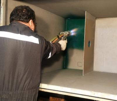 Le Polveri per il Rivestimento Termoplastico possono essere applicate tramite spruzzatura a fiamma dal momento che necessitano solo di fondersi, senza aver bisogno di reticolare.